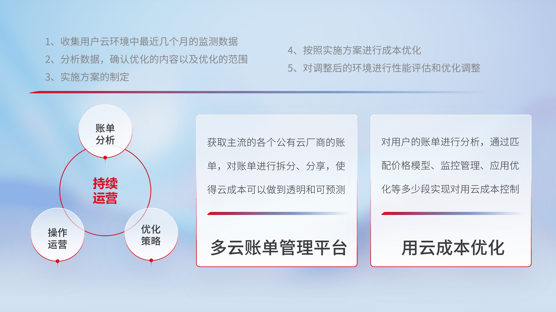 运用智能化工具分析云资源,,,提供日常费用可视化工具,,,自动账单拆分,,,,成本优化云上费用,,,,降本增效。。。。